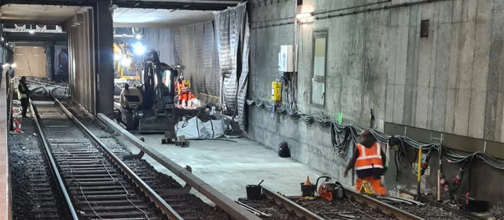 Gleissicherungsmaßnahmen im U-Bahn und Trambahn Bereich. Einsatz von Brandwache und Durchführung von Kontrollen auf der Baustelle.
