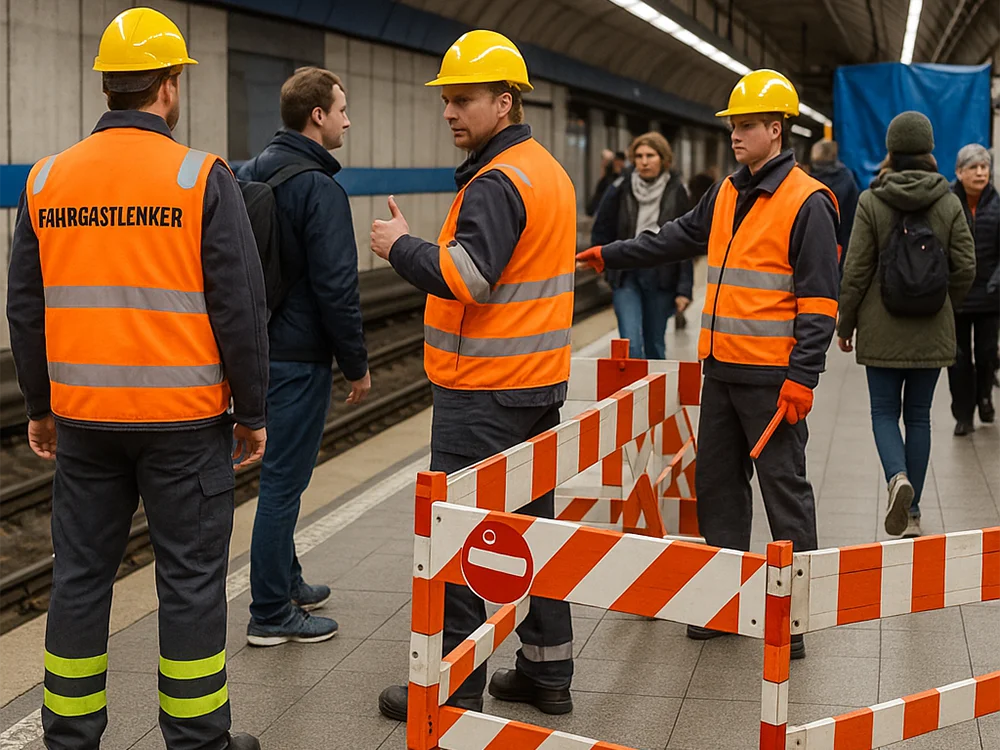 Wenn Fahrwege verlegt, Bahnsteigkanten verkürzt oder SEV (Schienenersatzverkehr) eingerichtet wird, steigen Risiko und Komplexität: Bahnsteige füllen sich ungleichmäßig, Querschnittsengpässe entstehen, und Fehlleitungen verlängern Umsteigezeiten. Der Fahrgastlenker ist an dieser Schnittstelle die operative Instanz, die Personenflüsse antizipiert, Bahnsteigkantenbereiche aktiv schützt, Wechselwirkungen zwischen Zu- und Abgang entflechtet und bei Bedarf kurzfristig Umsteuerung veranlasst. Dadurch sinkt die Gefahr von Rückstaus bis in Treppenbereiche, Rutsch- und Drängelunfällen wird vorgebeugt, und die Leistungsfähigkeit der Anlage bleibt stabil – selbst in Sperrpausen, bei Bauzuständen mit Interimswegen oder während Großveranstaltungen.